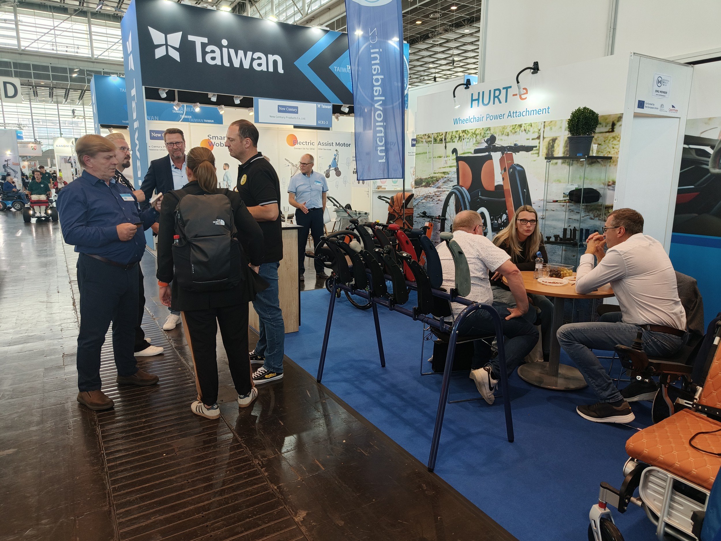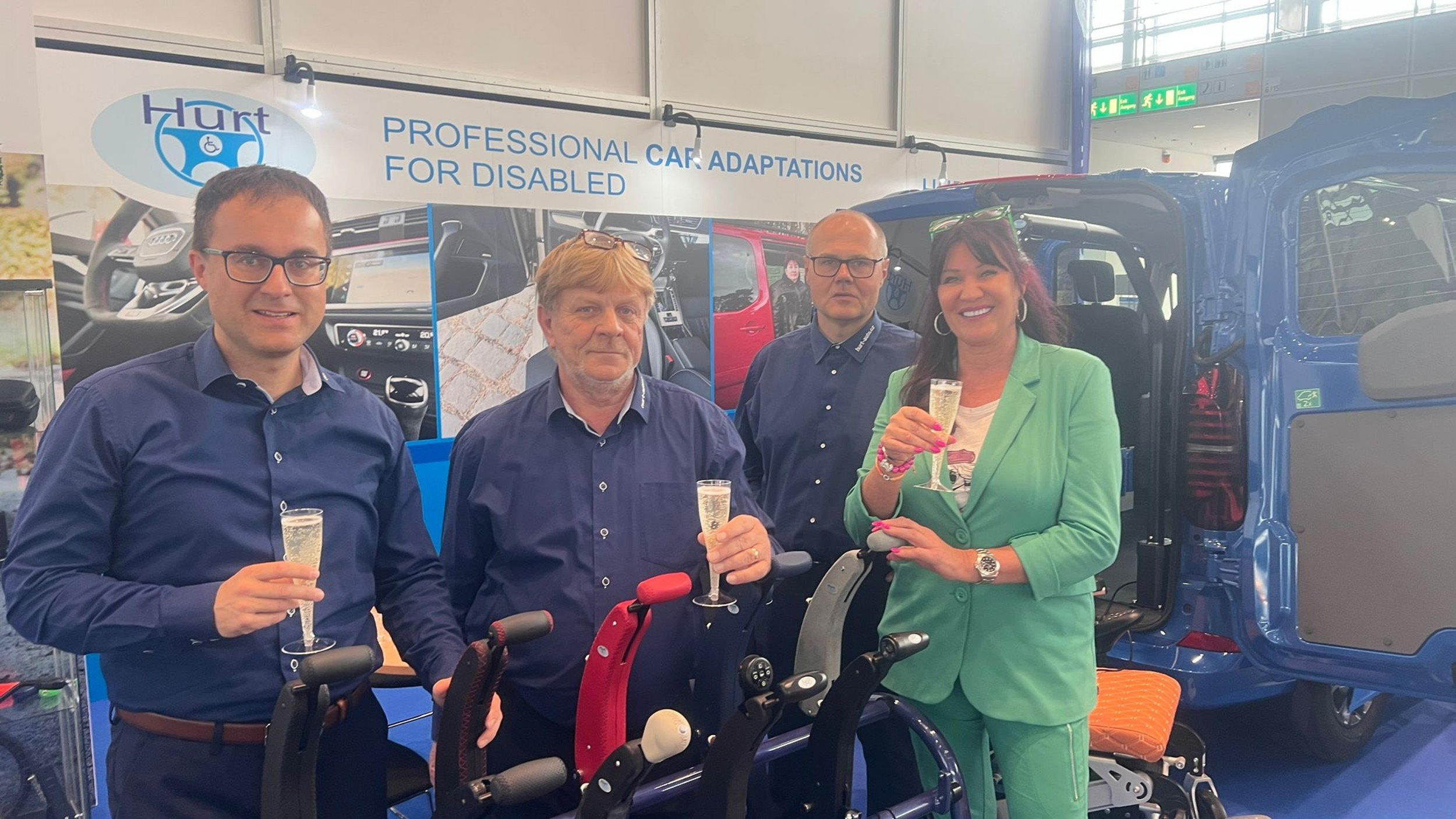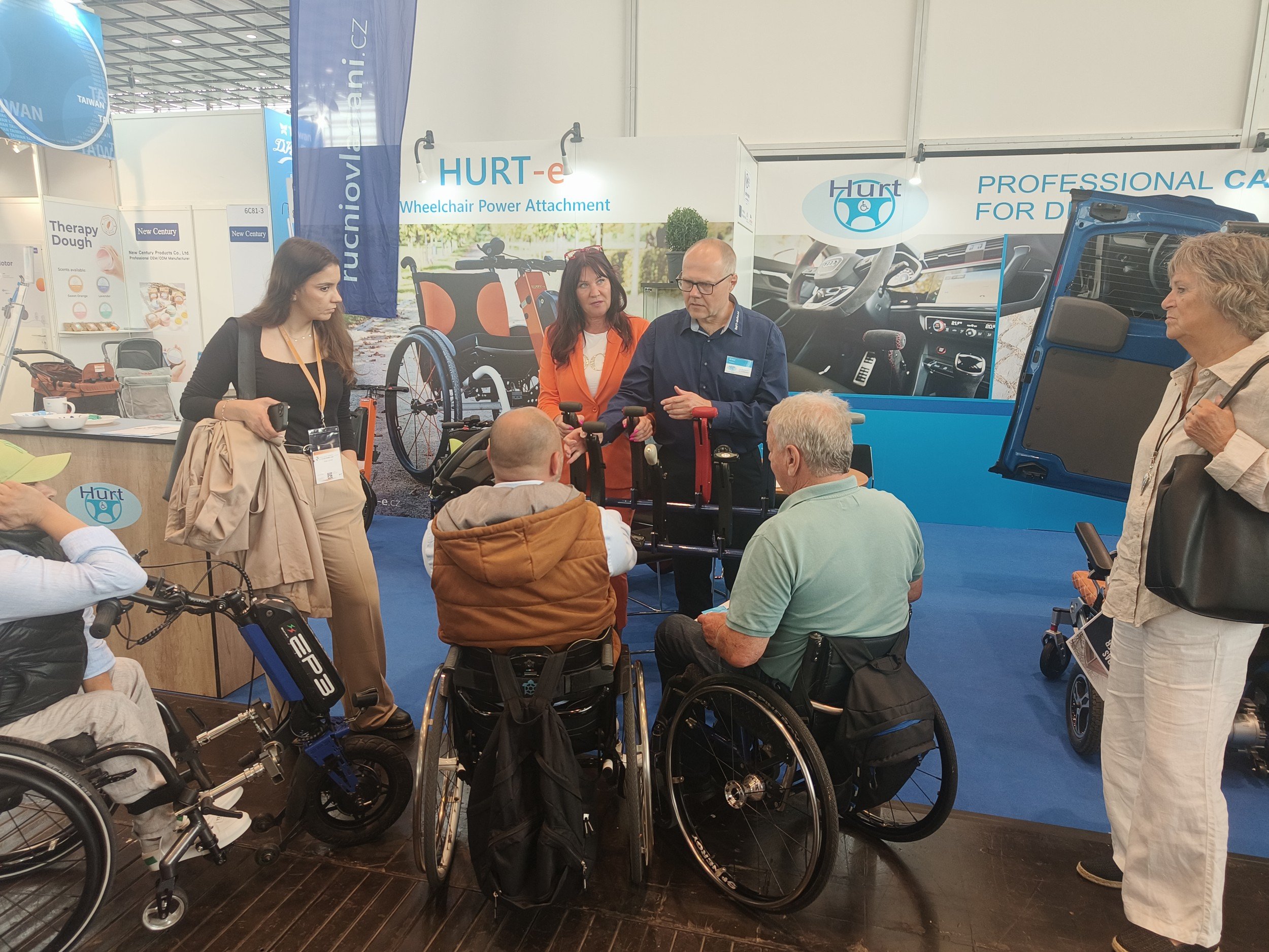 - Eine Vorführung aller Antriebsarten des Rollstuhls HURT-e, einschließlich der Vorstellung der neuen Variante HURT-e Elegance, die über einen herausnehmbaren Akku in einem Aluminiumgehäuse in der Farbe des Rohrs verfügt.